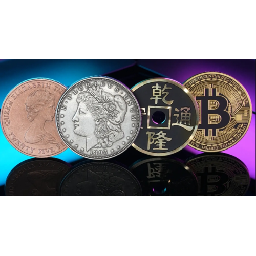 The set includes a Morgan Dollar, Copper Coin, Ancient Coin, and Bitcoin, all with a naturally deceptive standard edgeless design and noiseless operation. Its smooth function allows for simple, even one-handed performance, and it is compatible with VDR and other accessories. A professionally revised tutorial is included, making it easy to master complex effects like four-coin color changes, vanishes, and coin-through-table routines. The Pro Max delivers superior visual presence and believability for all your magic needs.
