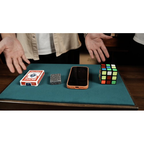 The magician borrows four random everyday items from the audience – a wallet, phone, air pod, or any small object the spectator is carrying. All items are placed openly on the close-up pad.