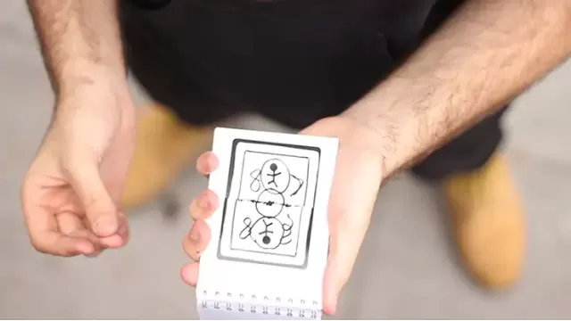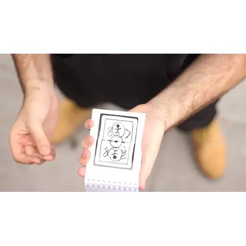 Suddenly the drawing VISIBLY jumps out of the pad, transforming into a real card, exactly matching the spectator's selection!