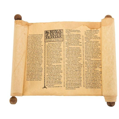 Andruzzi, Tony (Tom Palmer). The Legendary Scroll of Masklyn Ye Mage. [Chicago], ca. 1975. Handmade scroll with wooden handles, explaining many of Andruzzi's "bizarre" magical effects. From a limited edition. Margins soiled, as issued to appear aged.