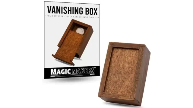 A coin is marked by a spectator and dropped into the small hardwood box and the lid is closed. The magician shakes the box rattling the coin inside and gives it to a spectator to hold. When the box is opened the coin has vanished!